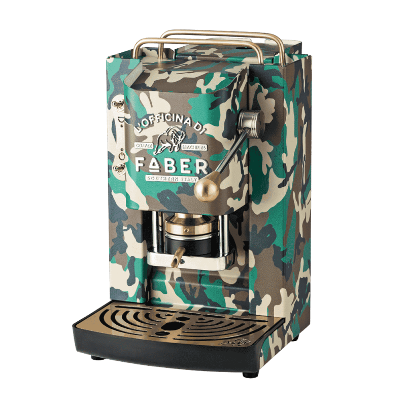 Toda la tecnología y el diseño de la cafetera de cápsulas Faber al servicio de una colección dedicada exclusivamente al estilo camuflaje.