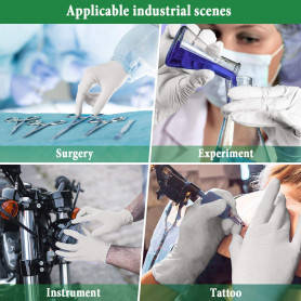 These powder-free gloves have a cuff rolled up and finely structured with a good sensitivity, dexterity, flexibility and a firm grip. Excellent for cleaning, work in the home, garage and garden without making a sweat, the hands.it fits like your skin with excellent protection against liquids, gas, oils, greases, glass, and sharp objects. These gloves are resistant to chemical products and the drilling, and, unlike latex gloves, these disposable gloves are non-allergenic and non-irritating. These gloves can be used as gloves for hair coloring, work gloves, gardening gloves, gloves for washing, gloves for cleaning, gloves mechanics, gloves, kitchen cooking gloves, gloves, food gloves, dental and more ! It is a perfect complement to the cleaning products